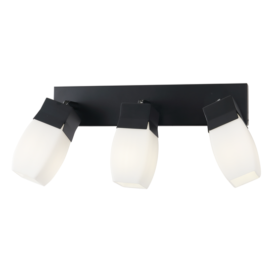 3Lt Spot Light Bar, Material:Metal+Glass, Bulb:3x E14 Max.40W, Product Size:L420×W80×H225mm,Shade size:74×74×122mm,Colour:black or chrome + opal glass ,Packing:white box+colour label