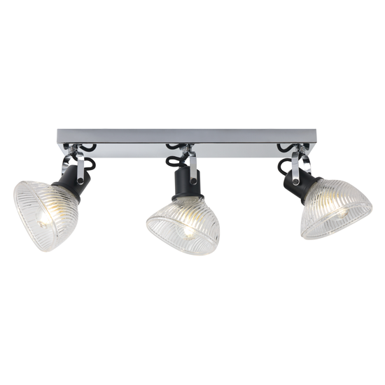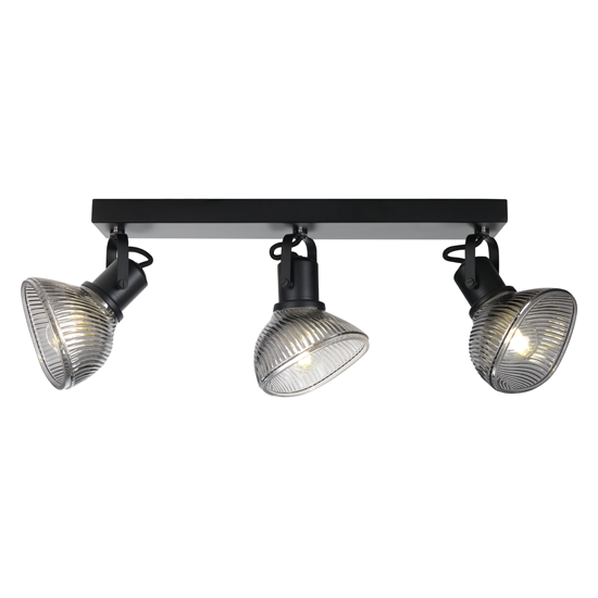 3Lt Spot Light Bar, Material:Metal+Glass,Bulb:3x E27 Max.40W, Product Size:L530×W150×H170mm, Shade size:128×123×85mm,Colour:Black + smoke glass,or Gold + Black metal parts / Cognac glass, or Chrome + Black metal parts / Clear glass, Packing:white box+colour label