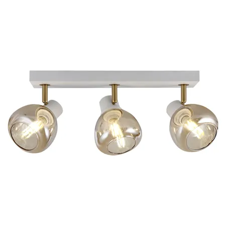 3Lt Spot Light Bar, Material:Metal+Glass, Bulb:3 x E14 Max.40W, Product Size:L380*W90*H155mm, Colour: matt white + sandy gold , Packing:white box+colour label