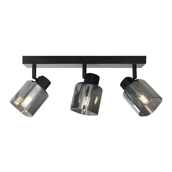 3Lt Spot Light Bar, Material:Metal+Glass, Bulb:3x E14 Max.40W,  Product Size:L380*W90*H135mm, Colour:matt black+smoke glass, Packing:white box+colour label