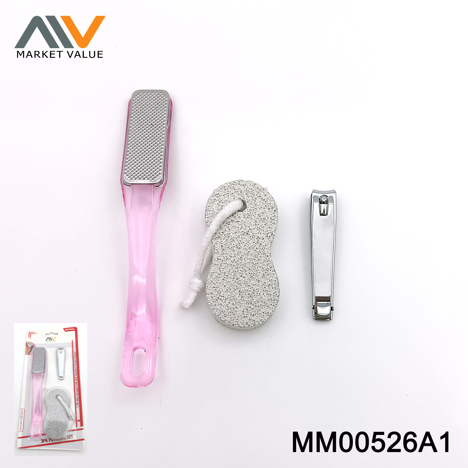 Summary: Offer your customers everything they need for a complete at-home pedicure with this convenient 3-piece set. This kit includes a skin scraper, a skin smoother, and a nail clipper, giving your customers all the tools to achieve smooth, healthy-looking feet. It's the perfect starter kit and an ideal impulse buy for any personal care aisle.
