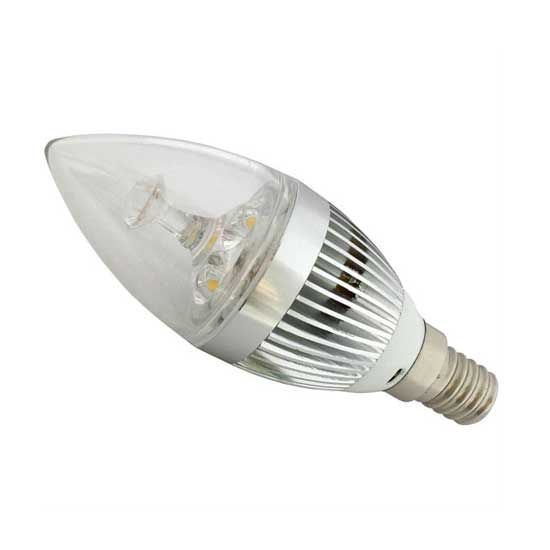 This is an LED candle bulb that consumes only 3 watts of energy to deliver excellent brightness. Its housing is crafted with narrow fins for good heat dissipation. This refined light bulb is ideal for use in crystal lighting and chandeliers.