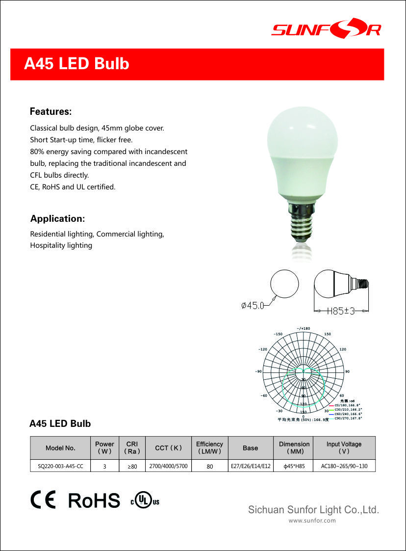 • 80% energy saving compared with incandescent bulb, replacing the traditional incandescent and CFL bulbs directly.