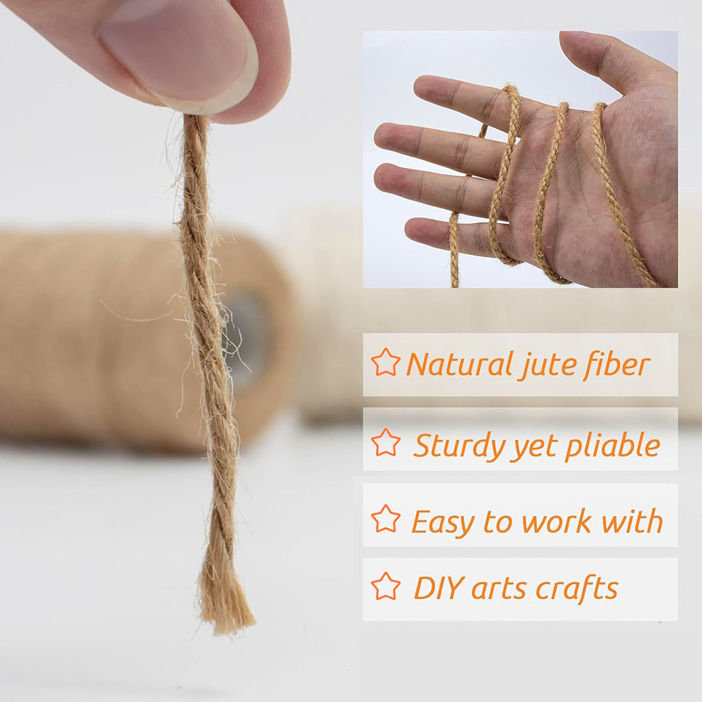 Suitable for gardening use, such as using this jute twine to tie up plants, trailing plants, etc.; arts and craft projects, such as used for crafting and presentation knots, bottle craft and decorating floral displays, etc.