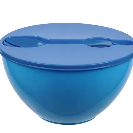 One set with ready fork and spoon storage on the lid,a perfect set for salad mixing.
