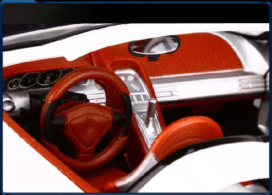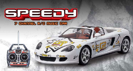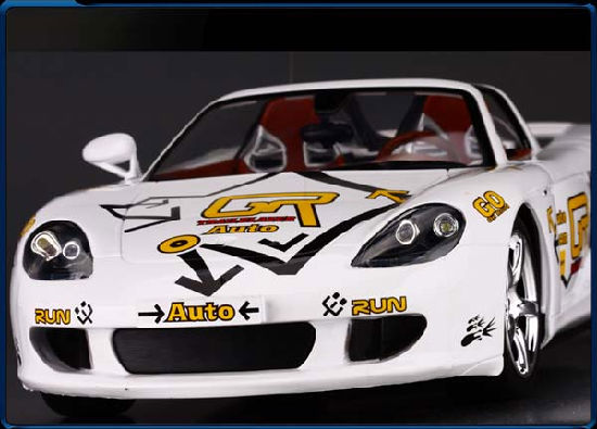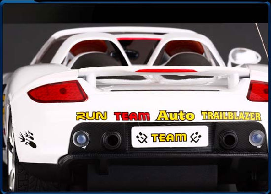 This R/C car displayed features a 4-way control. The R/C car has an incredibly crafted body imitating the look of sports car. Faithful details and craftsmanship makes this radio control car looks brilliantly real.