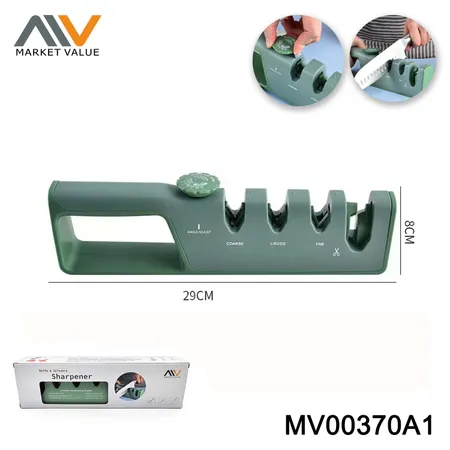 Summary: Offer your customers the easiest and most effective way to keep their knives razor-sharp. This 4-in-1 Jumbo Sharpener provides a complete system for sharpening, honing, and polishing all types of blades. Its ergonomic design and multiple stages make it simple for anyone to restore a dull knife to like-new condition.