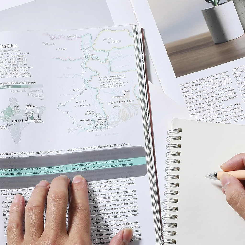 With their simple yet effective design, these strips are ideal for helping readers stay focused on the specific sentence they are currently on within a block of text by obscuring other sentences with gray coloring while highlighting the one they're reading in transparent color