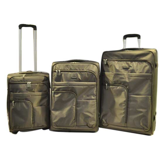 This 4-piece luggage set features lightweight bags made of fabric. Each bag features a padded, lockable main compartment to protect your belongings. The luggage set also comes with steady grip handles with expandable pull bars.