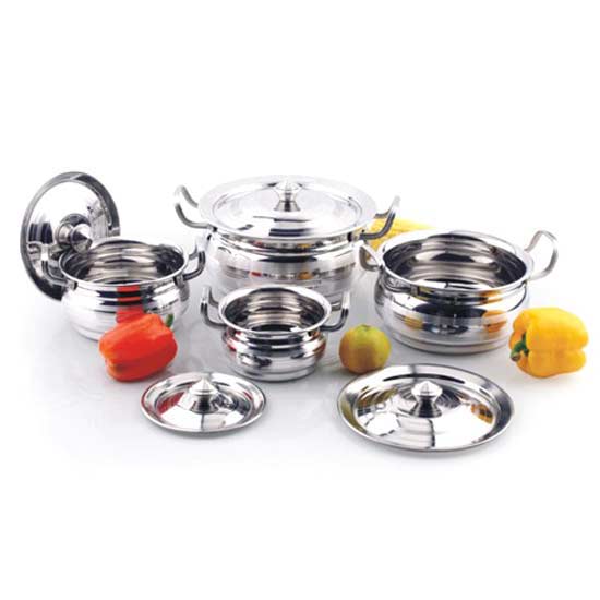 This 4-piece pot set is made of top-quality stainless steel for maximum endurance. The 2 handles are sturdily attached to allow a comfortable grip. The stainless steel cover included fits the pot perfectly.
