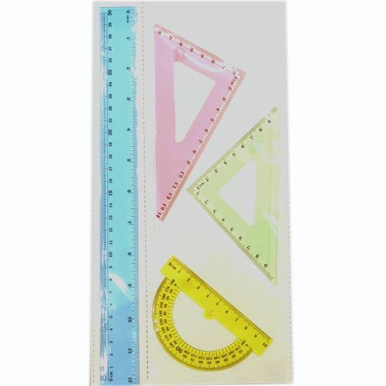 The 4-piece ruler set includes a ruler, a 180-degree protractor, a 60-degree triangular rule and a 45-degree triangular rule. They come with sturdy construction for lasting durability. This versatile ruler set offers precise measuring for your kid's math learning.