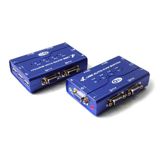 This 4-port VGA KVM switch offers the simplest way to simultaneously run and share audio speakers among four computers with a single USB keyboard, monitor and USB mouse. This self-powered KVM switch features the USB mouse and keyboard emulation to ensure smooth operation. It is compatible with Windows, Linux and Unix computers.