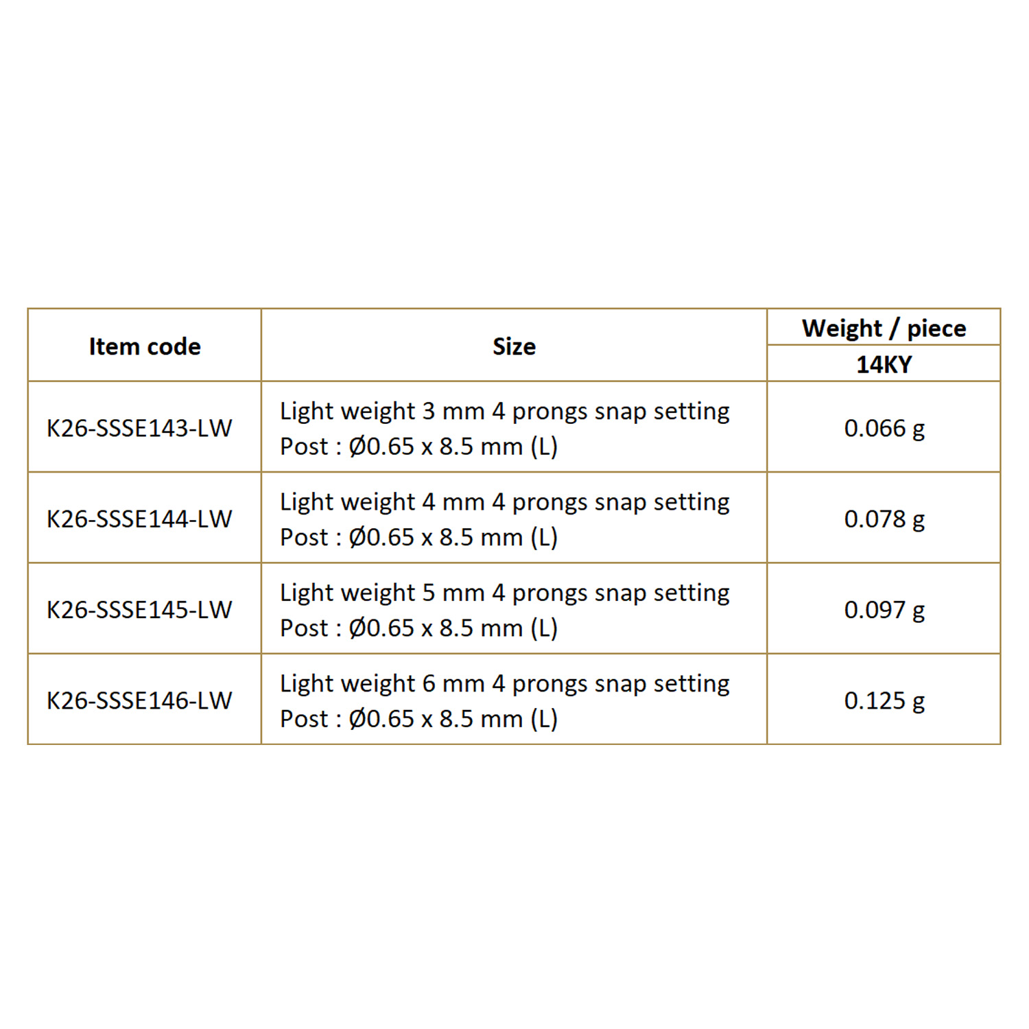14K, 4 prong snap settings earring, (Light weight)