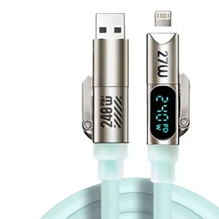 240W 4-in-1 charging cable features a smart digital display for real-time power monitoring, helping users clearly see charging performance at a glance.