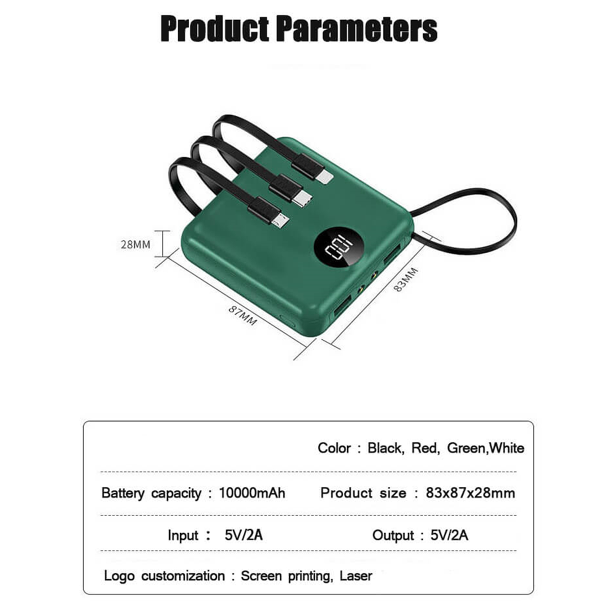 Battery Capacity: 10000mAhInput: 5V/2AOutput: 5V/2ALogo Customization: Screen printing, Laser