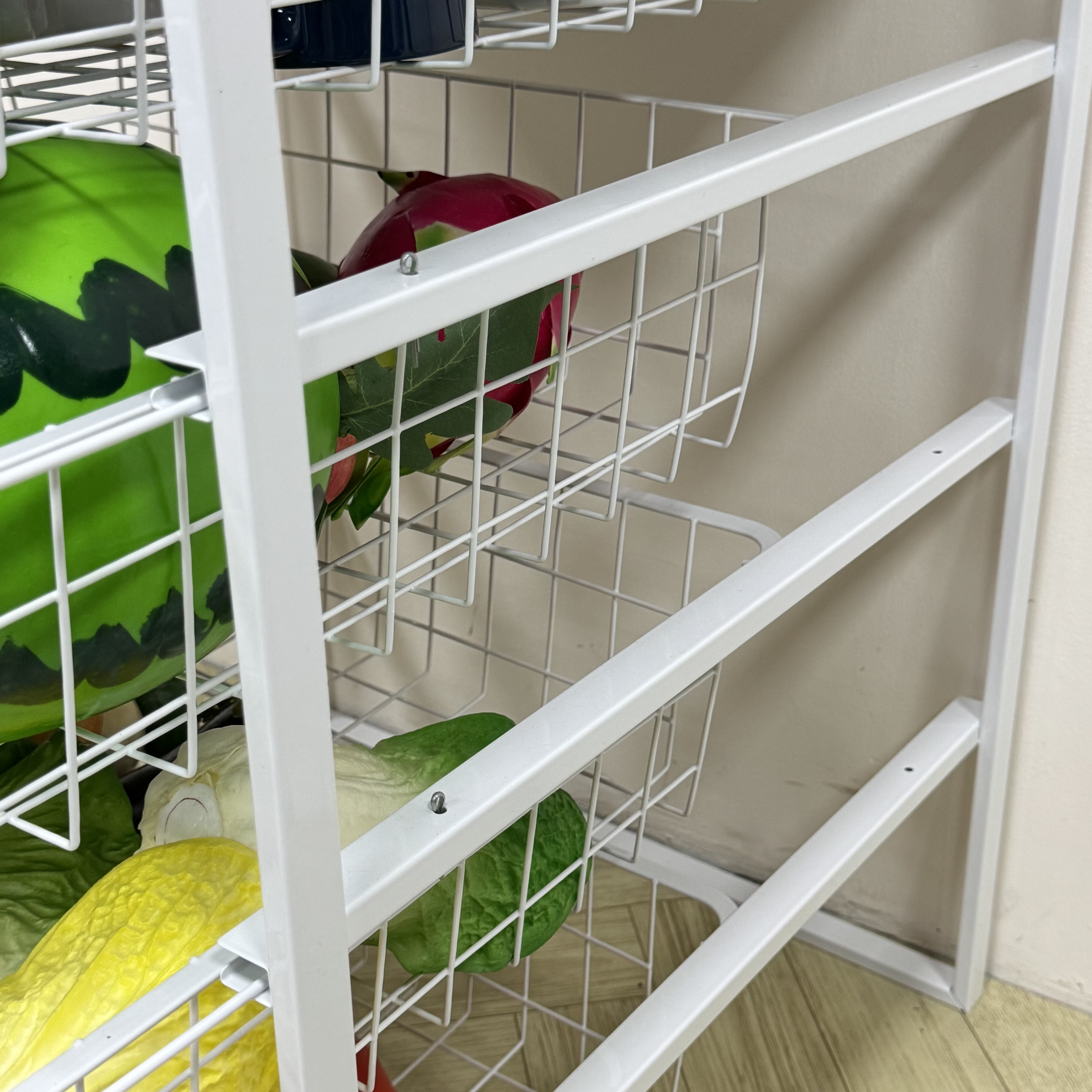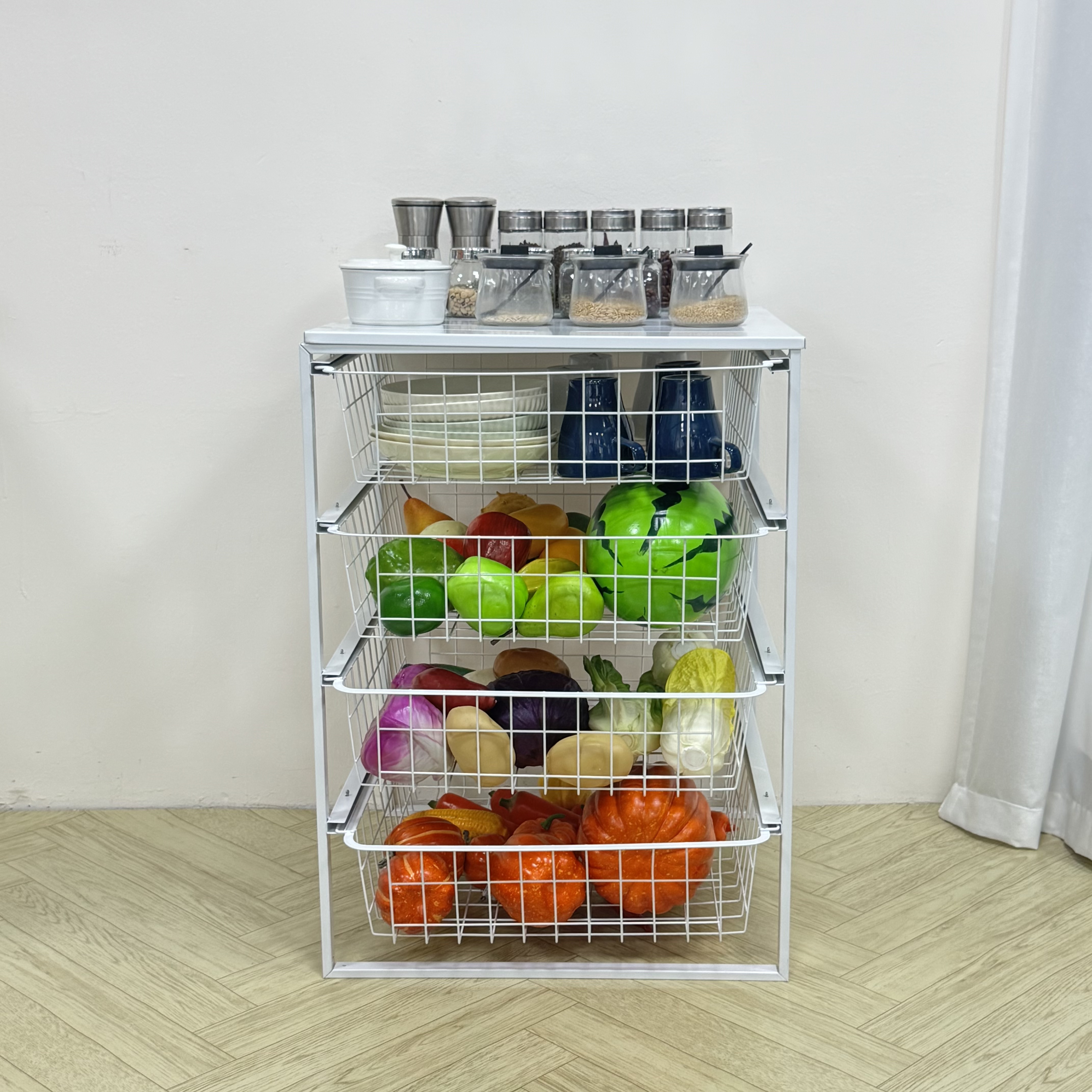 Optimize Your Home Space with the Versatile 4-Tier Pull-out Mesh Basket Organizer.