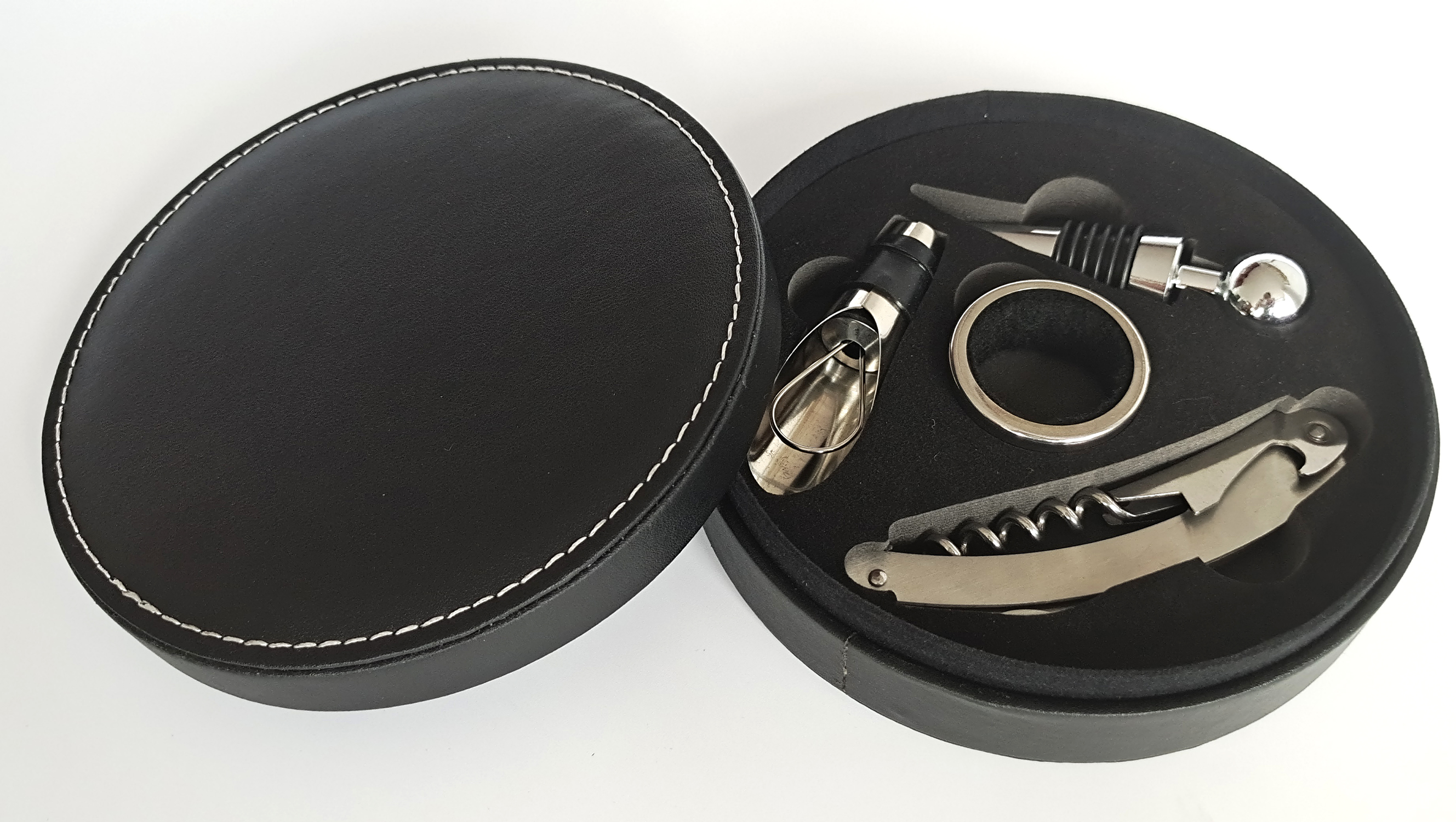 Material:  Zinc alloy stopper +wine decanter , 304 SS  ring; 420 SS Bottle opener