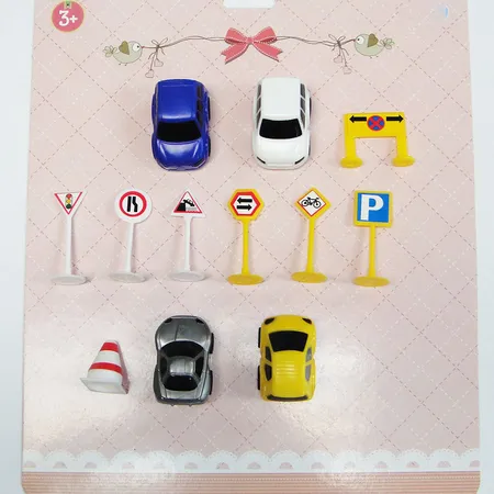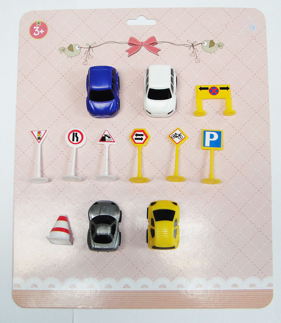4 pcs Private car with street sign on blister card, for different color ( car size about 2 inch)