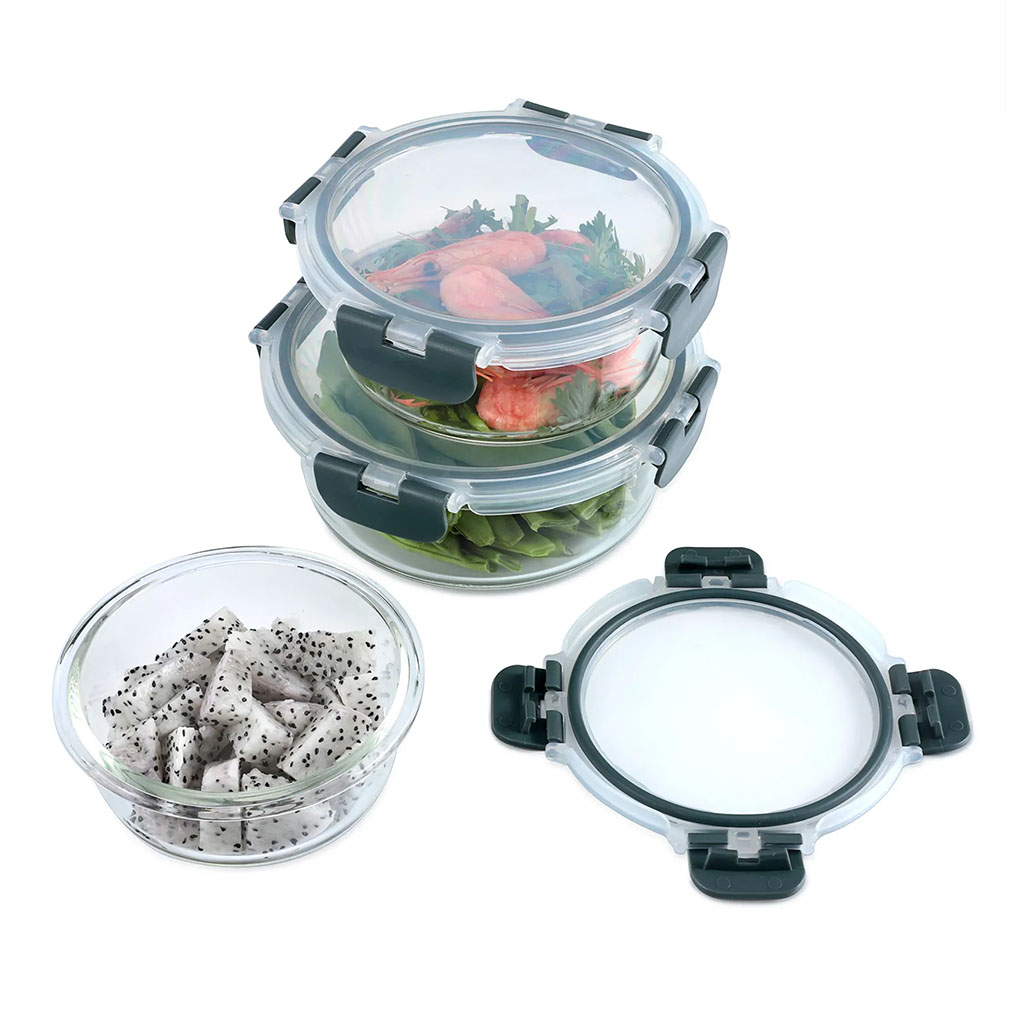 400 ml Round-shaped Glass Crisper with Snap Locking Lid includes the following features :