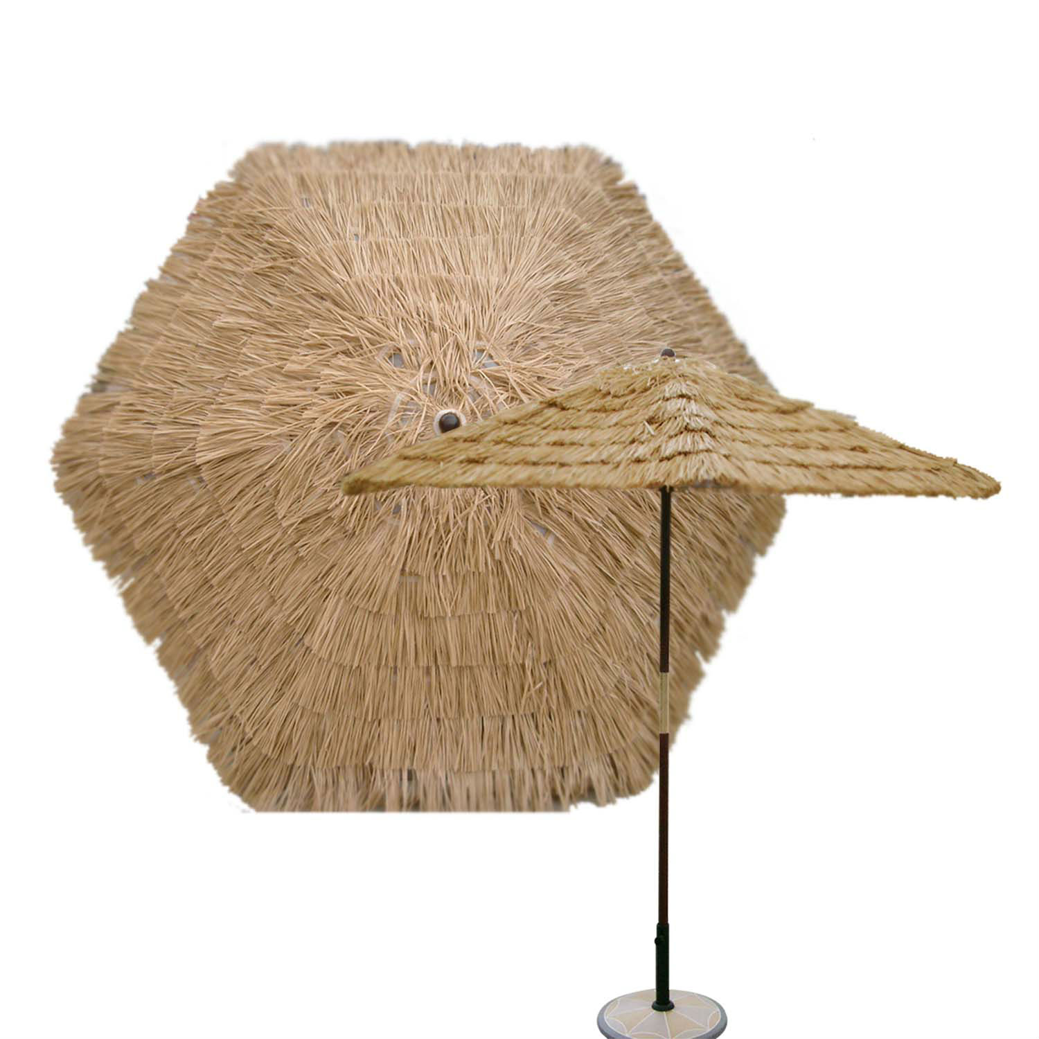 Introduce a tropical accent to your backyard with this hexagon umbrella. Instilling the holiday vibe into your garden with a straw-like style, the gorgeous design is supported by a group of durable wooden ribs to resist windy conditions. Thanks to its waterproof feature, it can be placed near the poolside to spruce up your outdoor setting.