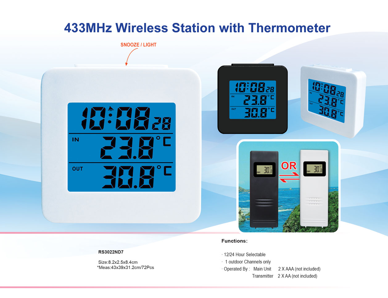 • Operated by:Main unit 2xAAA,Transmitter 2xAA