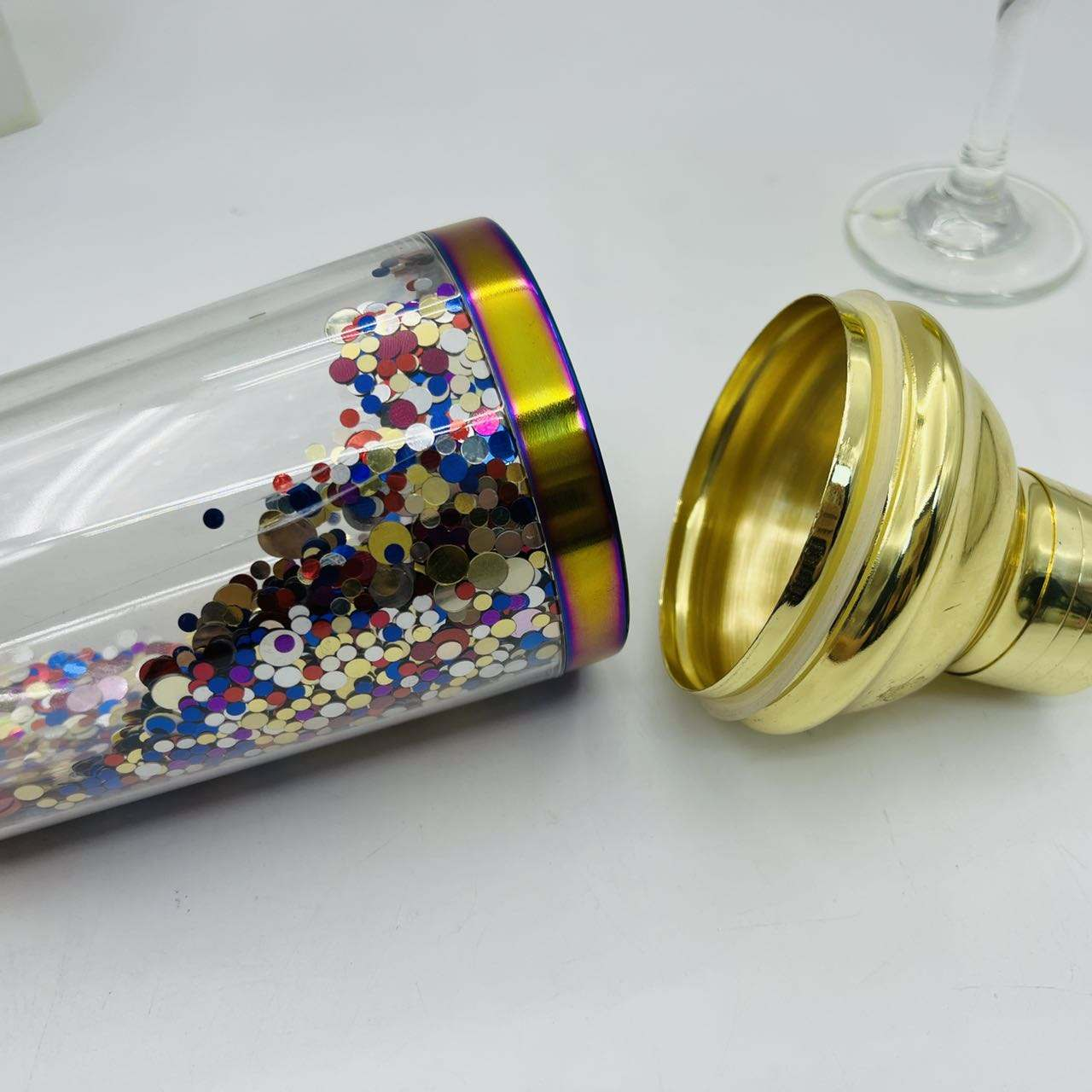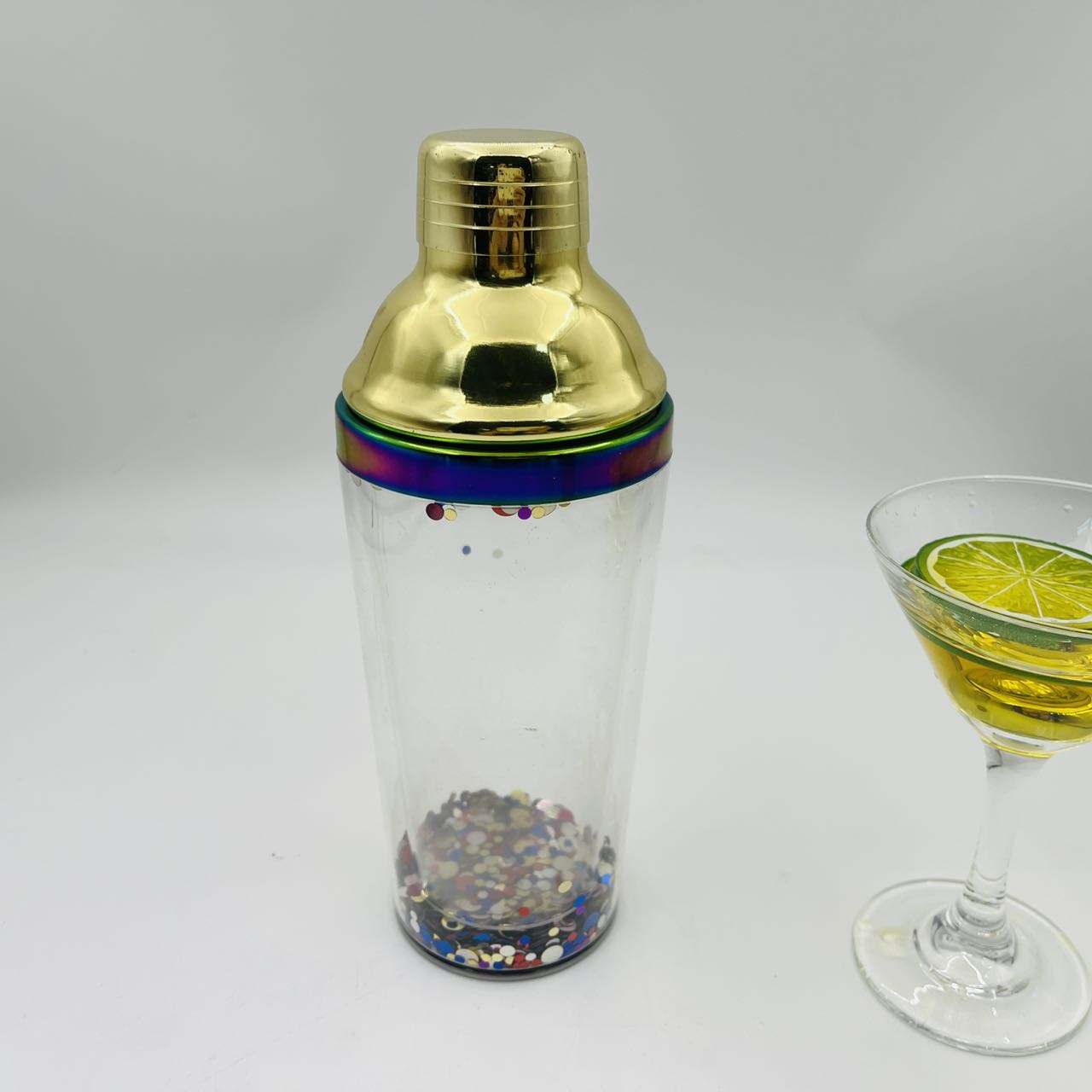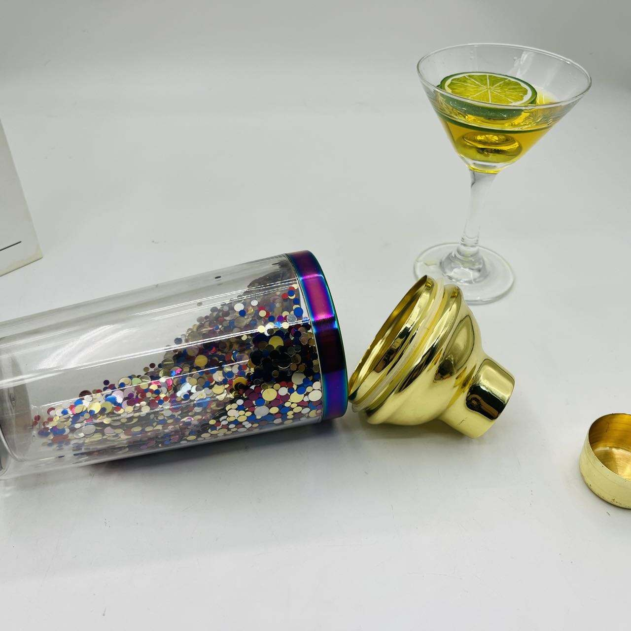 450ml Cocktail Shaker PS Bar Shaker Bartender Kit Bar Accessories Clear Shaker with Colored Shards