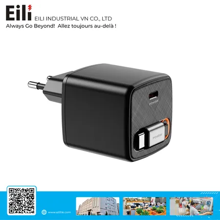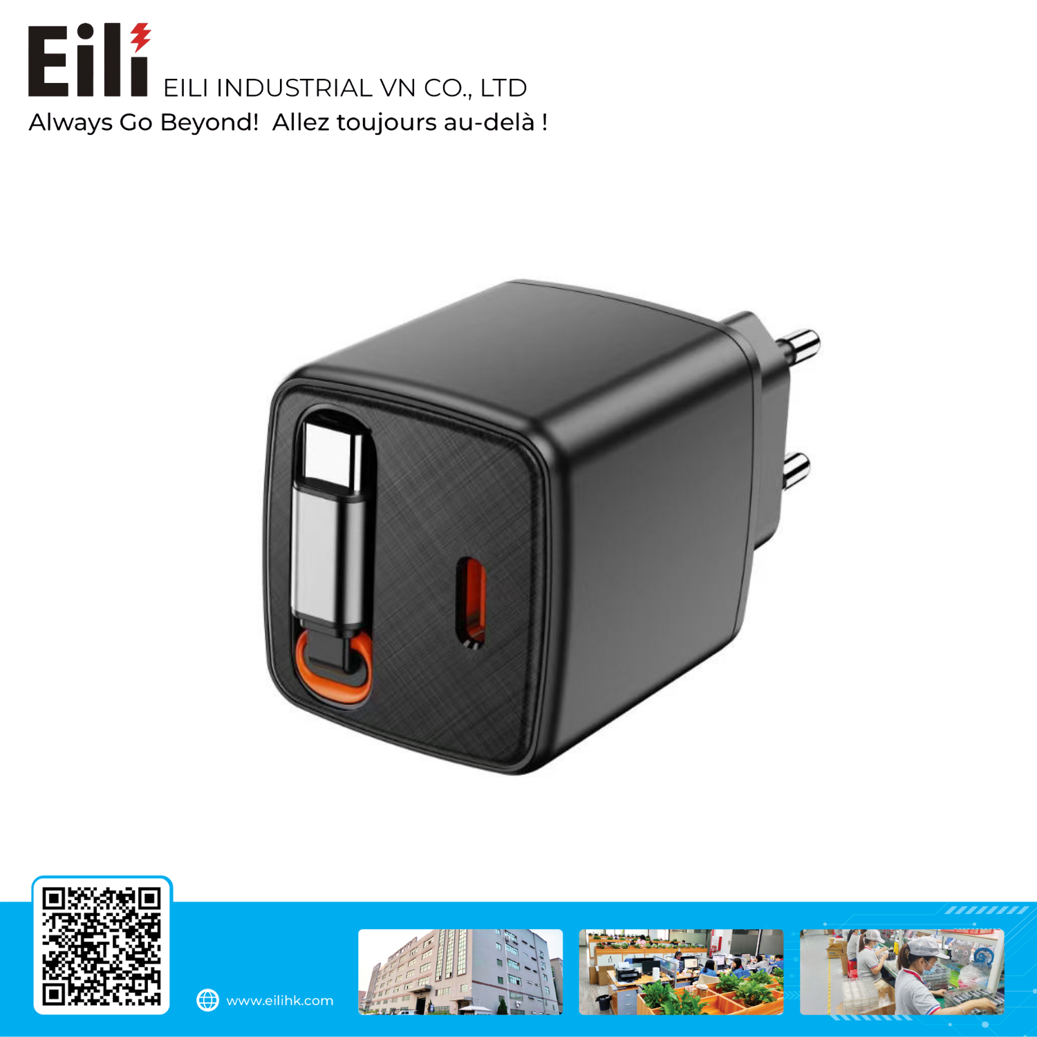 The 45W Retractable Charger features a built-in retractable USB-C cable and an additional USB-C port, keeping cables organized and tangle-free. Its retractable cable design allows for easy storage, portability, and convenient on-the-go charging. PPS support ensures fast, safe, and efficient power delivery for smartphones, tablets, and other USB devices.