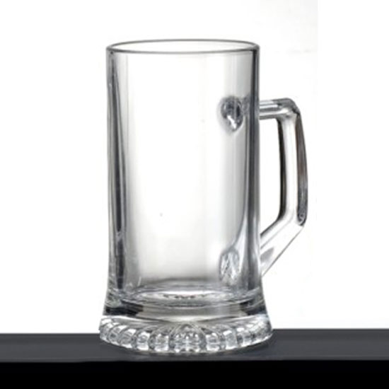 The beer mug is finished with a transparent design. It is fitted with a stout and sturdy handle. The base of this mug slightly flares.