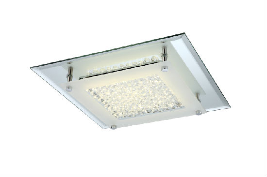 • ceiling lamp chrome, mirror edge, glass satin, glass chrystals clear, incl. 1xLED 12W 38,4V, 1010lm, 4000K