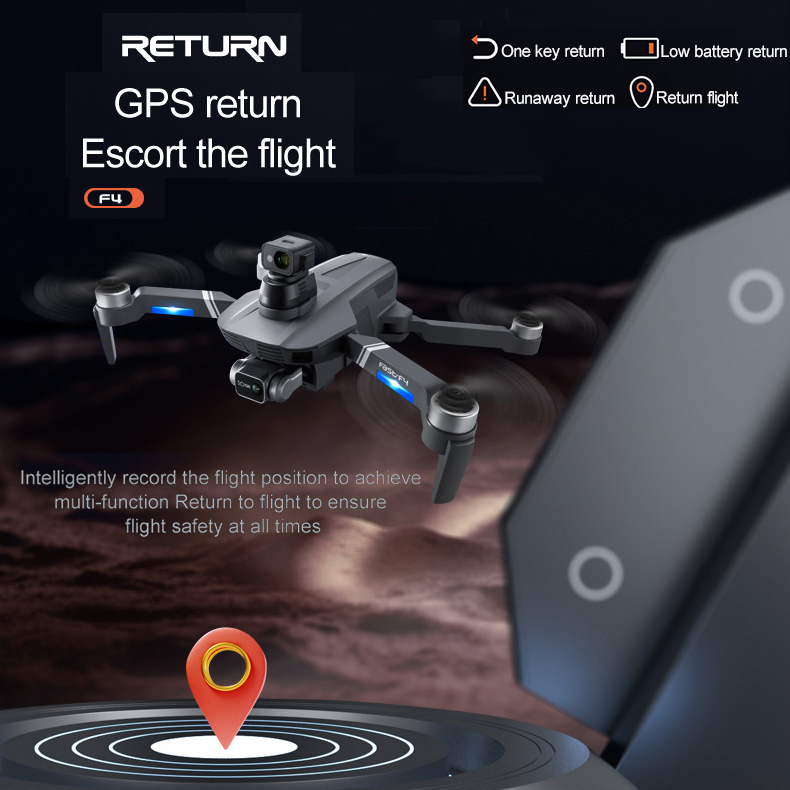 Function: One key take-off/landing, Forward/backward, Turn left/right, Left/right side-flying, Ascent/descent, Altitude hold, Auto hover/flip, Headless mode, Roll over to stop, WiFi camera with selfie, APP FPV real time transmission. (Only Available for GPS Option, GPS positioning, Auto return if low battery or over distance or out of control, Waypoint flight/Circle flight)