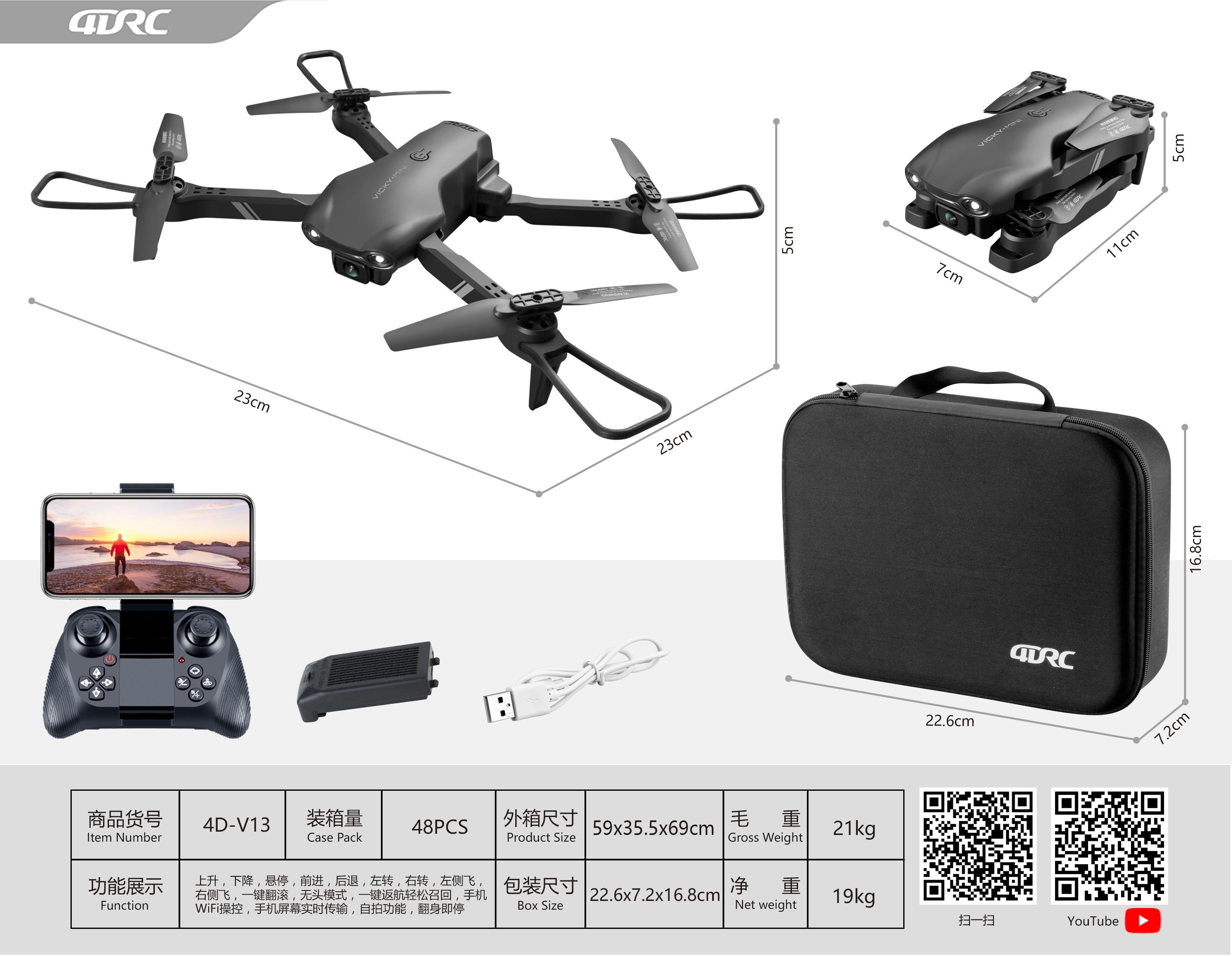 Function: One key take-off/landing, Forward/backward, Turn left/right, Left/right side-flying, Ascent/descent, Altitude hold, Auto hover/flip, Headless mode, Roll over to stop. (Only Available for Camera Option, WiFi camera with selfie, APP FPV real time transmission)