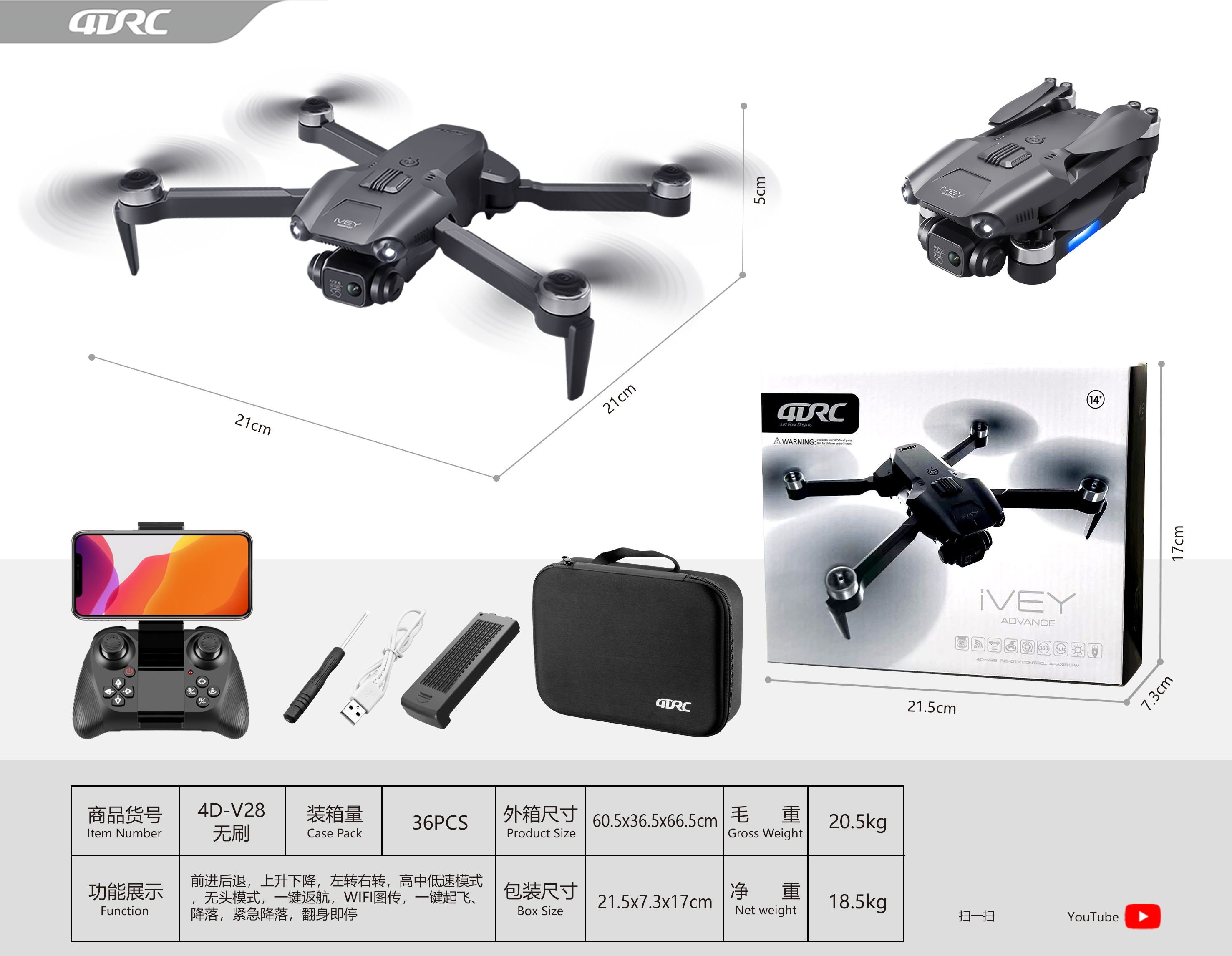 Function: One key take-off/landing, Forward/backward, Turn left/right, Left/right side-flying, Ascent/descent, Altitude hold, Auto hover/flip, Headless mode, Roll over to stop. (Only Available for Camera Option, WiFi camera with selfie, APP FPV real time transmission)