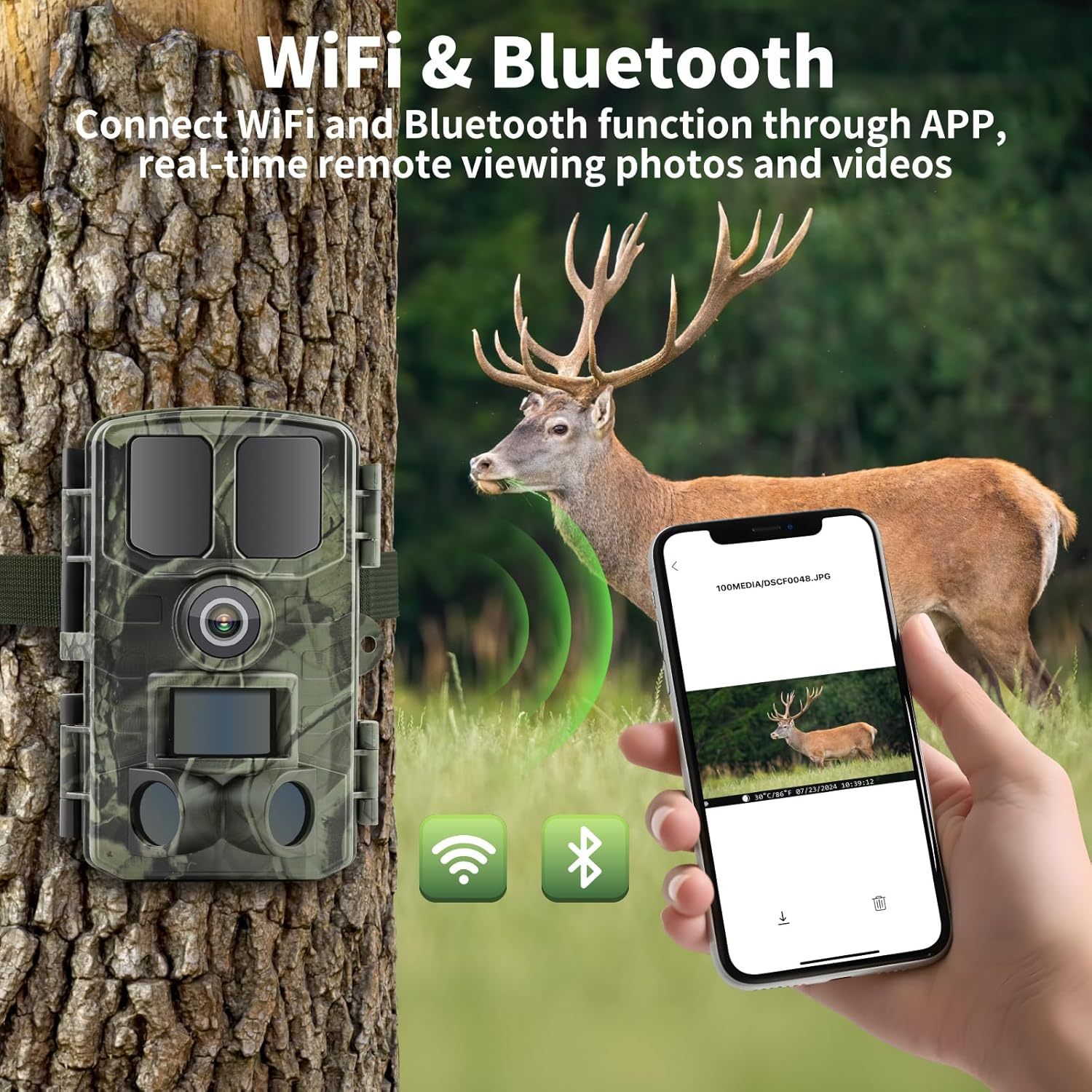 The camera has a built-in Wi-Fi and Bluetooth module, so that you can connect and operate the camera through a dedicated APP (“TrailCam Go”). The Bluetooth module, operating in low power, is used for device discovery, and Wi-Fi is used for preview, image transmission and settings.