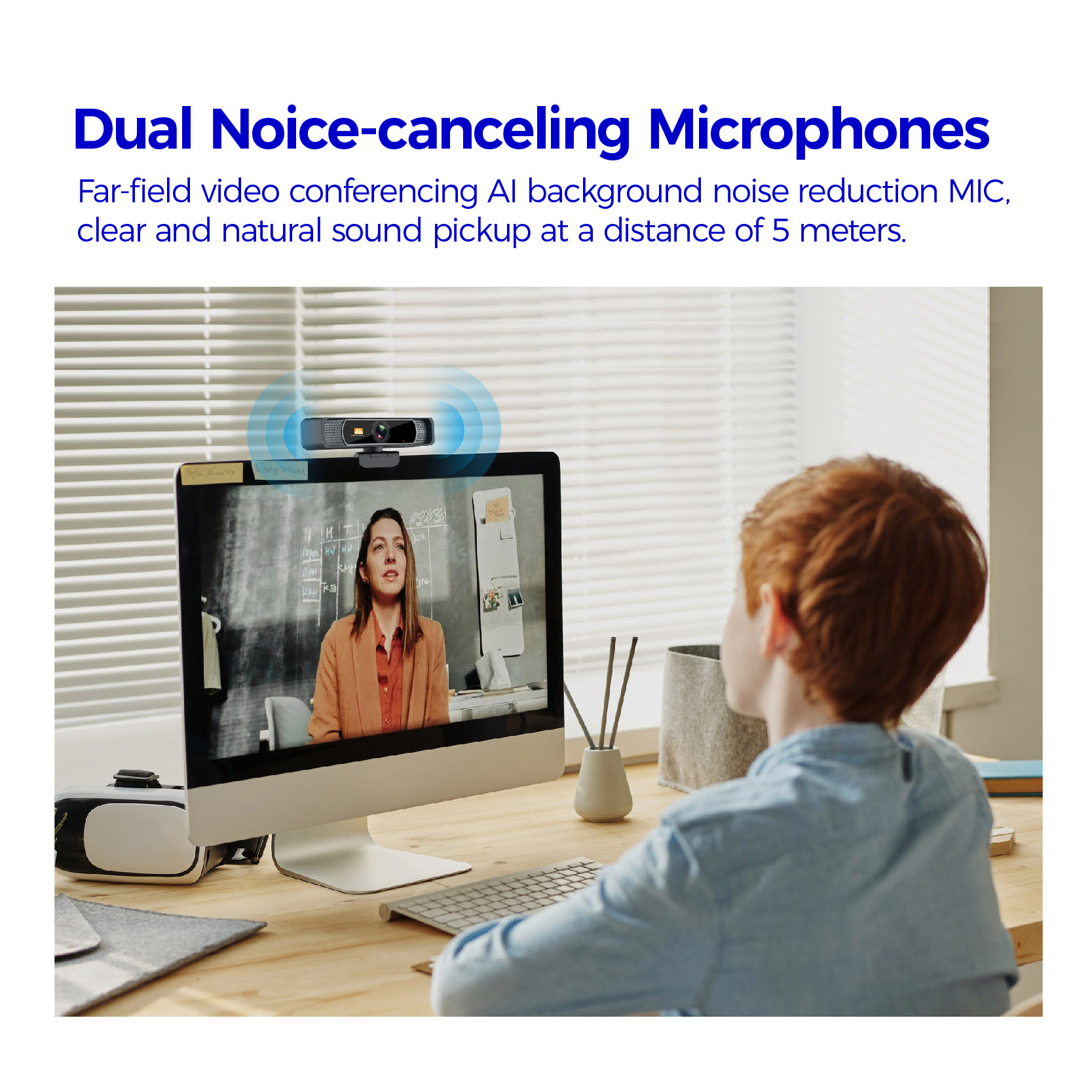 This C1914 4K Webcam with dual AI microphone computer camera for laptop/desktop Mac, USB PC web Cam for conferencing/streaming/video Calling.