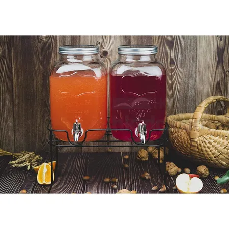4L Plastic Tap Twin Glass Beverage Dispenser with Iron Stand