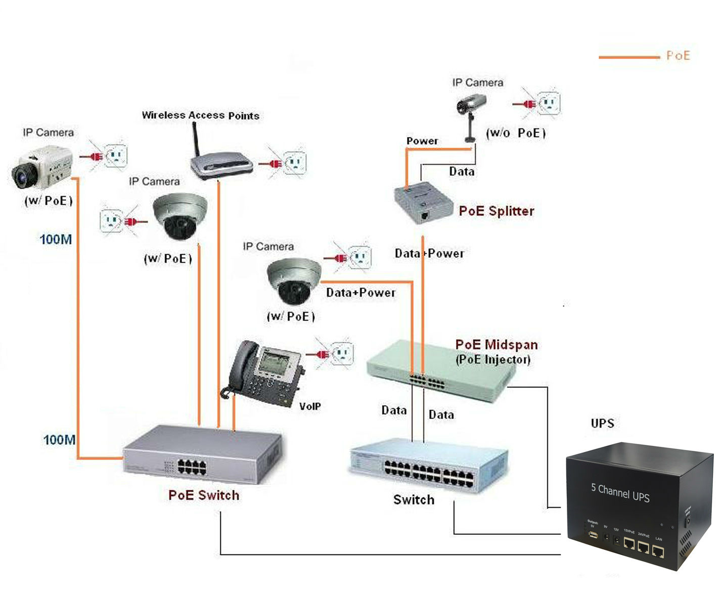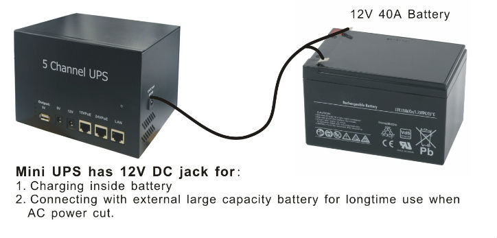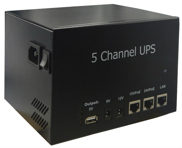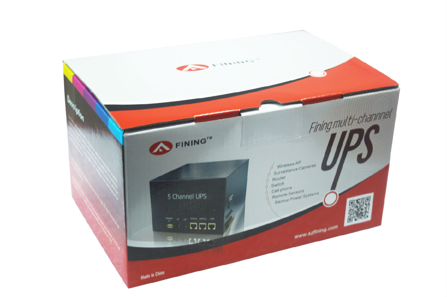 The Fining multi-channnel UPS is designed for applications that require a backup power source in order to maintain uninterrupted service to customers. The enclosure can provide 5 channel outputs, 5V/9V/12V/15V/24. Features include an advanced battery charge controller to protect against over-charging or over-discharging of the sealed lead acid batteries. When AC off, it still can provides 15V and 24V PoE output to wireless AP or CPE cards, sensors, inverters, etc. It can support both 100-240VAC input and 12VDC DC input. DC input source can be 12V additional battery. The recommended battery storage capacities includes 12V4.5AH and 12V7AH. A typical 250mW wireless access point with average power consumption of 3.5W will run 26 hours on a 7Ah battery at room temperature or 17 hours at -20 deg C.