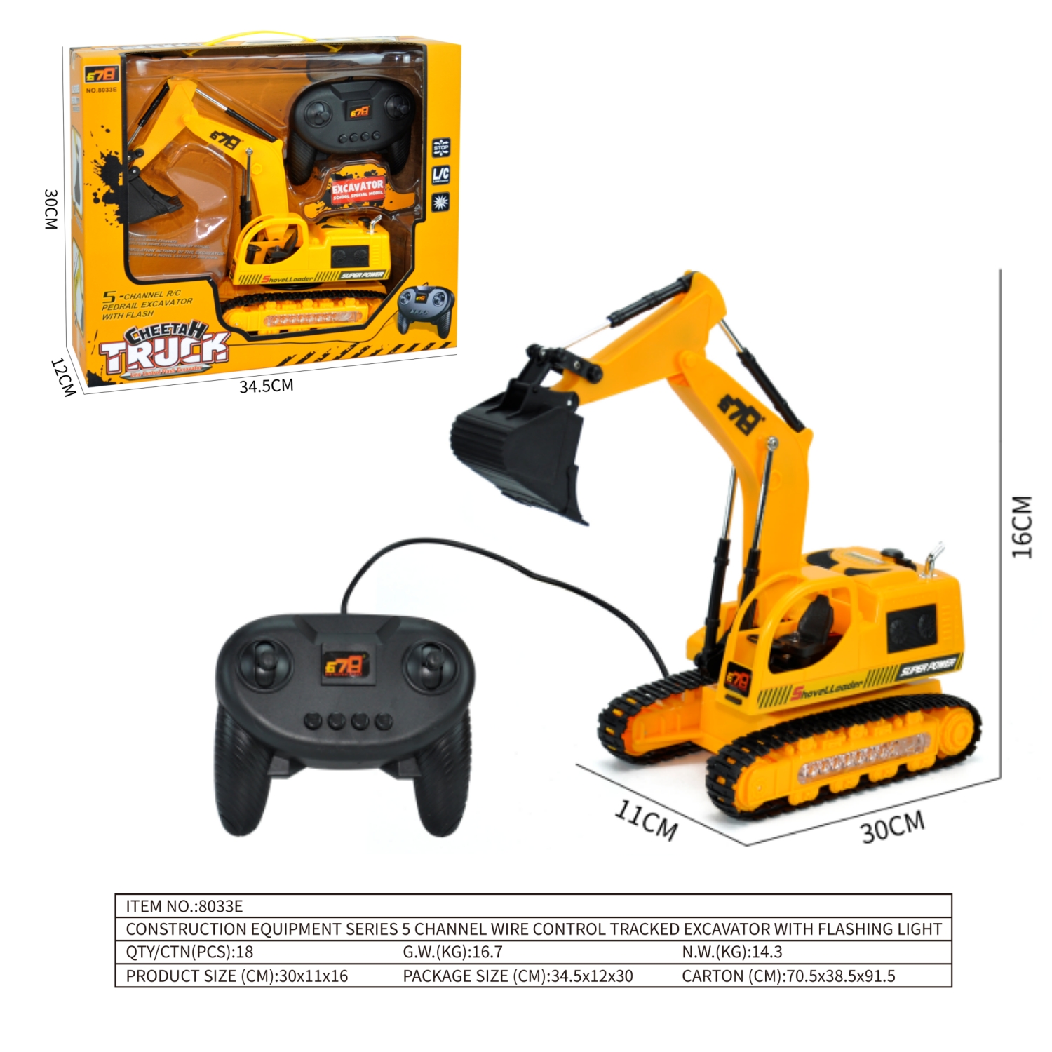 5-Channel Wired Tracked Excavator with Flashing Light 8033E