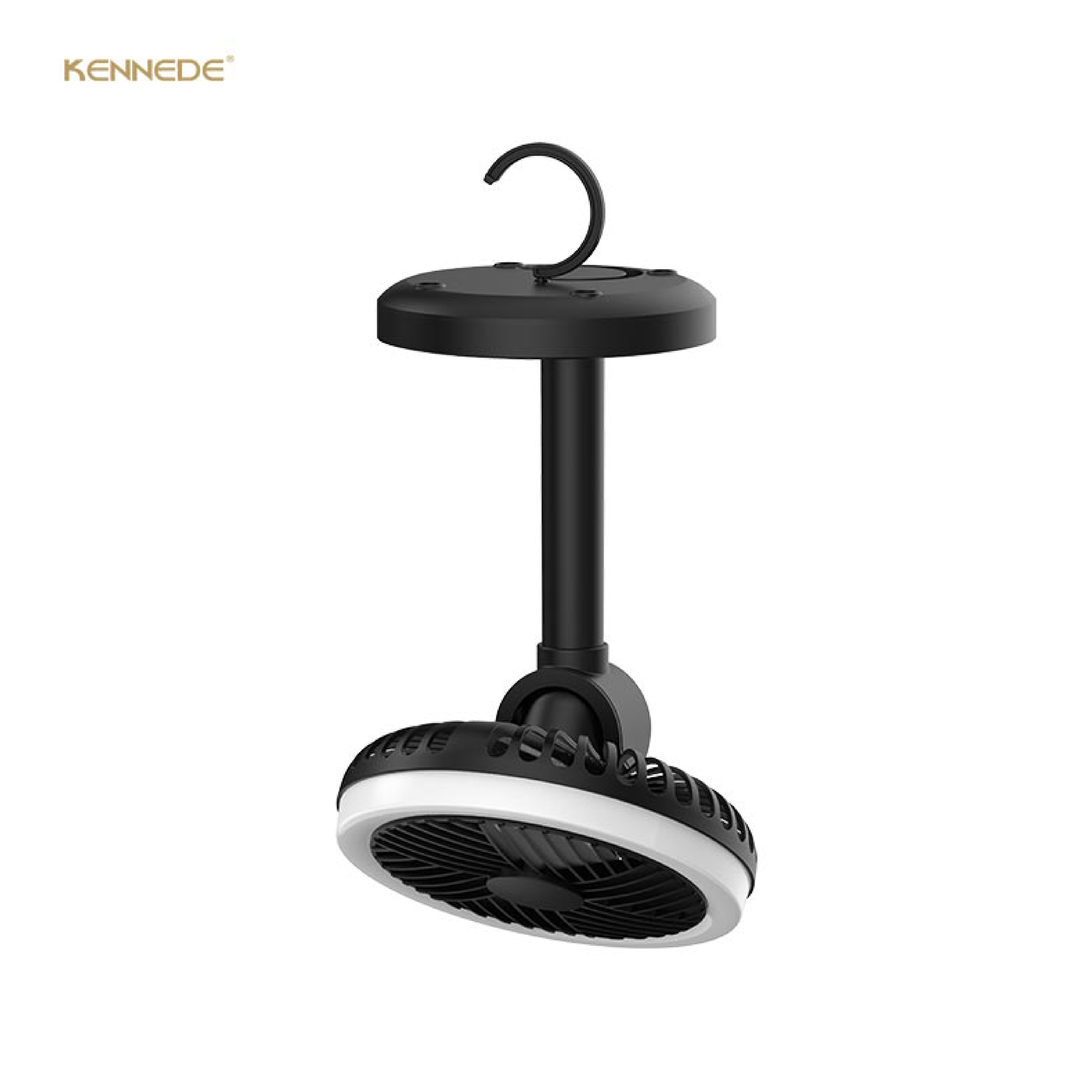 The KN-L2875 is a compact 5-inch mini rechargeable fan designed for versatile use, perfect for camping and outdoor activities with its convenient hanging hook and built-in night light.