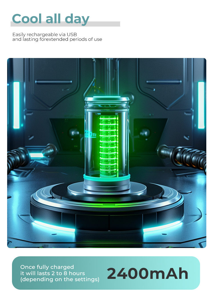 2. Powered by dual 3.7V/2400mAh lithium batteries connected in parallel, ensuring long-lasting performance.