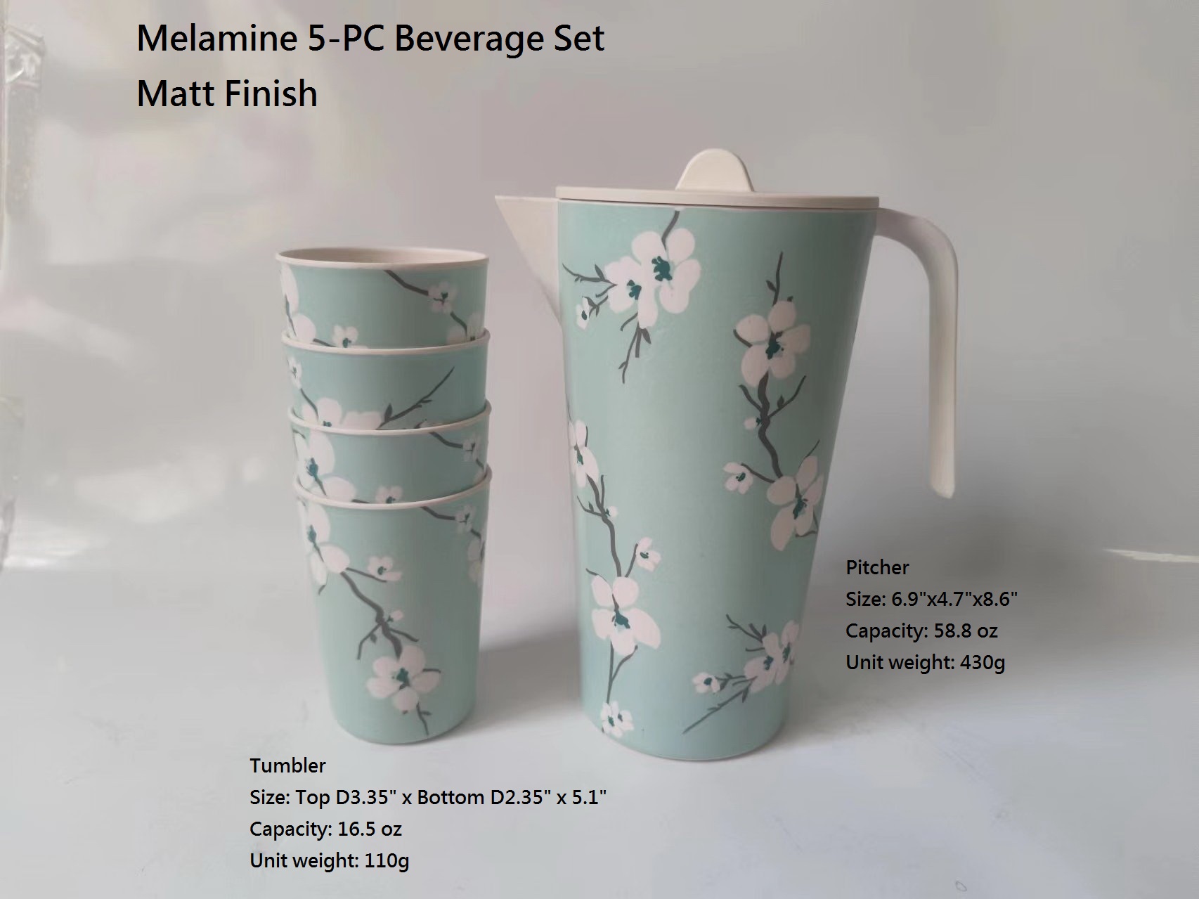 5-PC Melamine Beverage Set Matt Finish