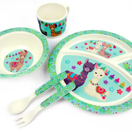 • Each set comes with a plate with dividers, a cup, a fork, a spoon, and a bowl.