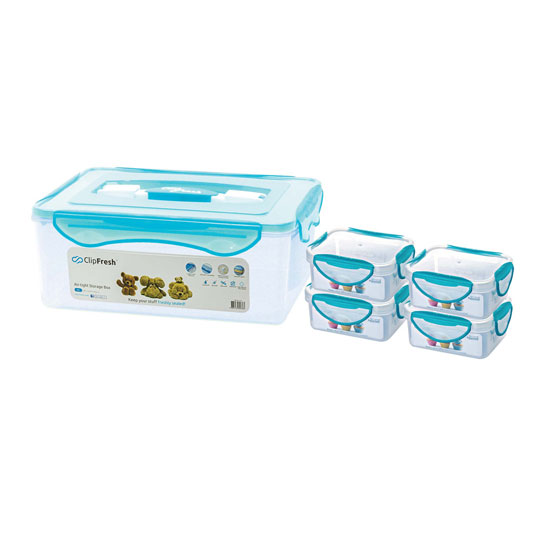 This is a 5-piece food container set that is made of safe and non-toxic material. The airtight cover keeps the food inside in good condition. This food container set offers an extra-long service life.