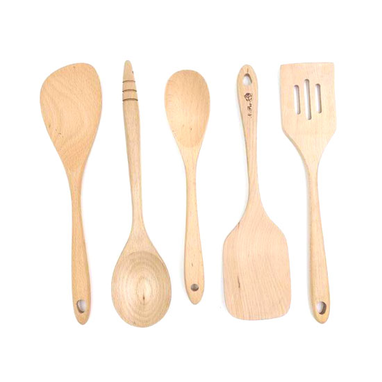 This kitchen tool set comes with two turners and three cooking spoons. The beech wood material is particularly strong and sturdy. Featuring a well-balanced design, these tools feel comfortable in your hand.