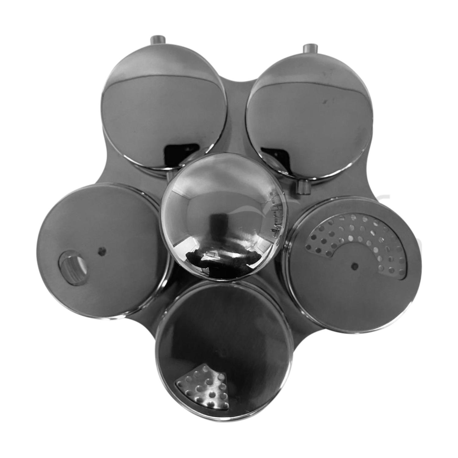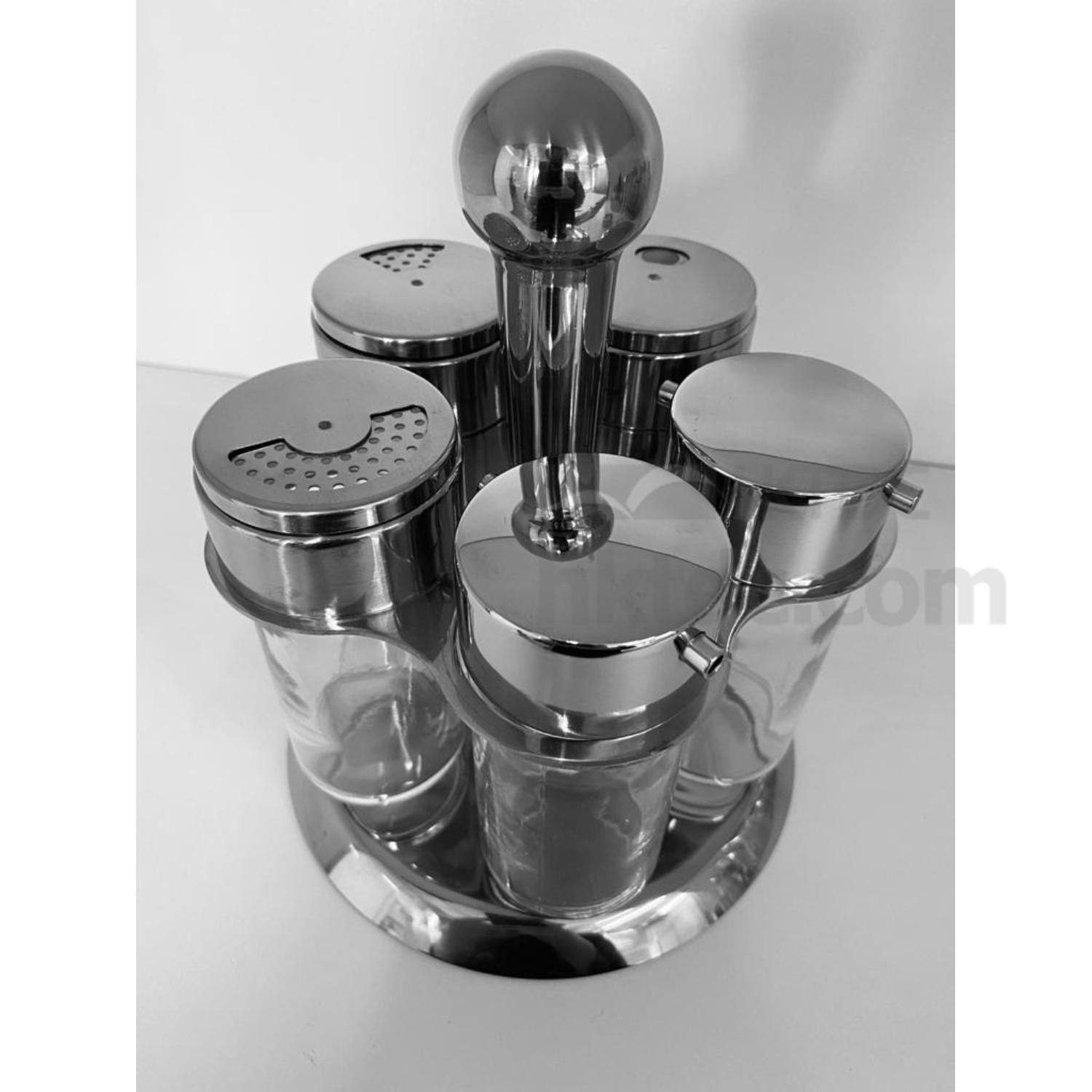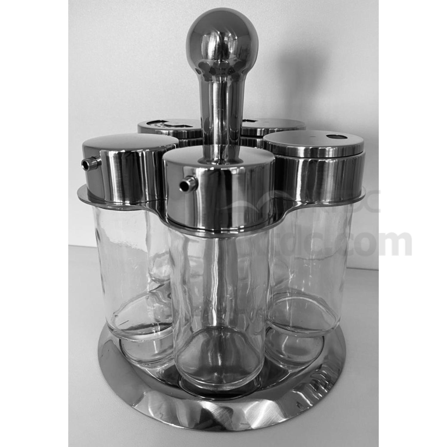 5 Pieces Condiment Set on Revolving Stand in 18/0 Stainless Steel