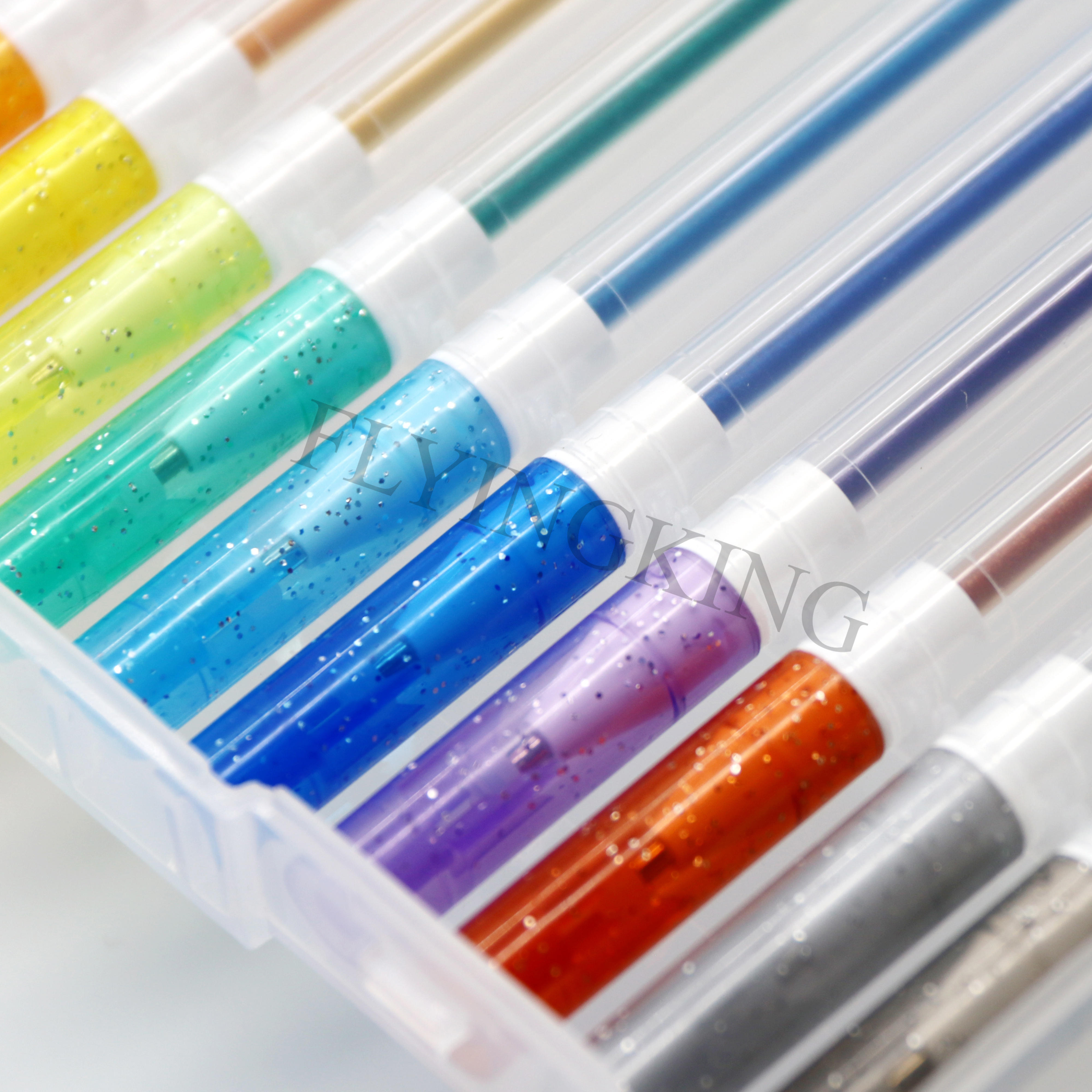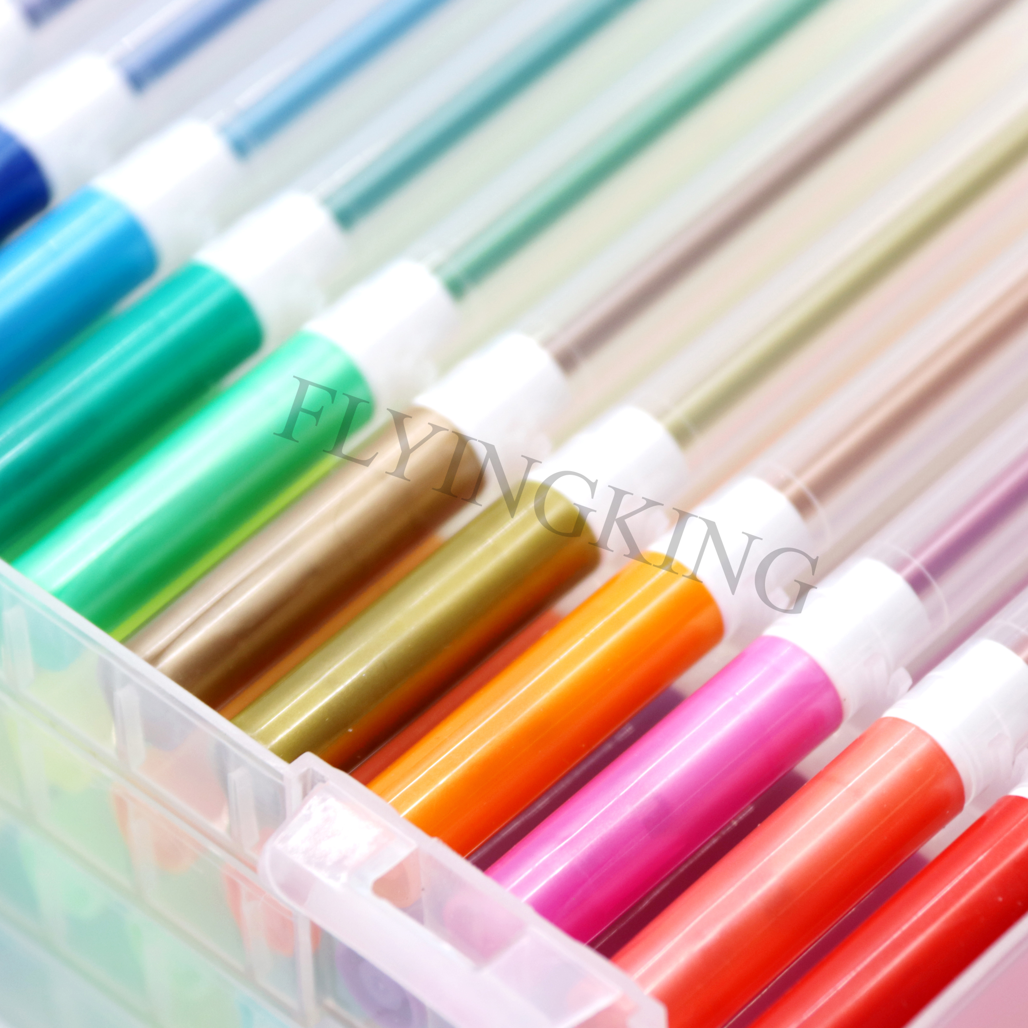 • 5 Tier 60pc Gel pens, it has five different kinds of gel pens: metallic, glitter, neon glitter, pastel, fluorescent