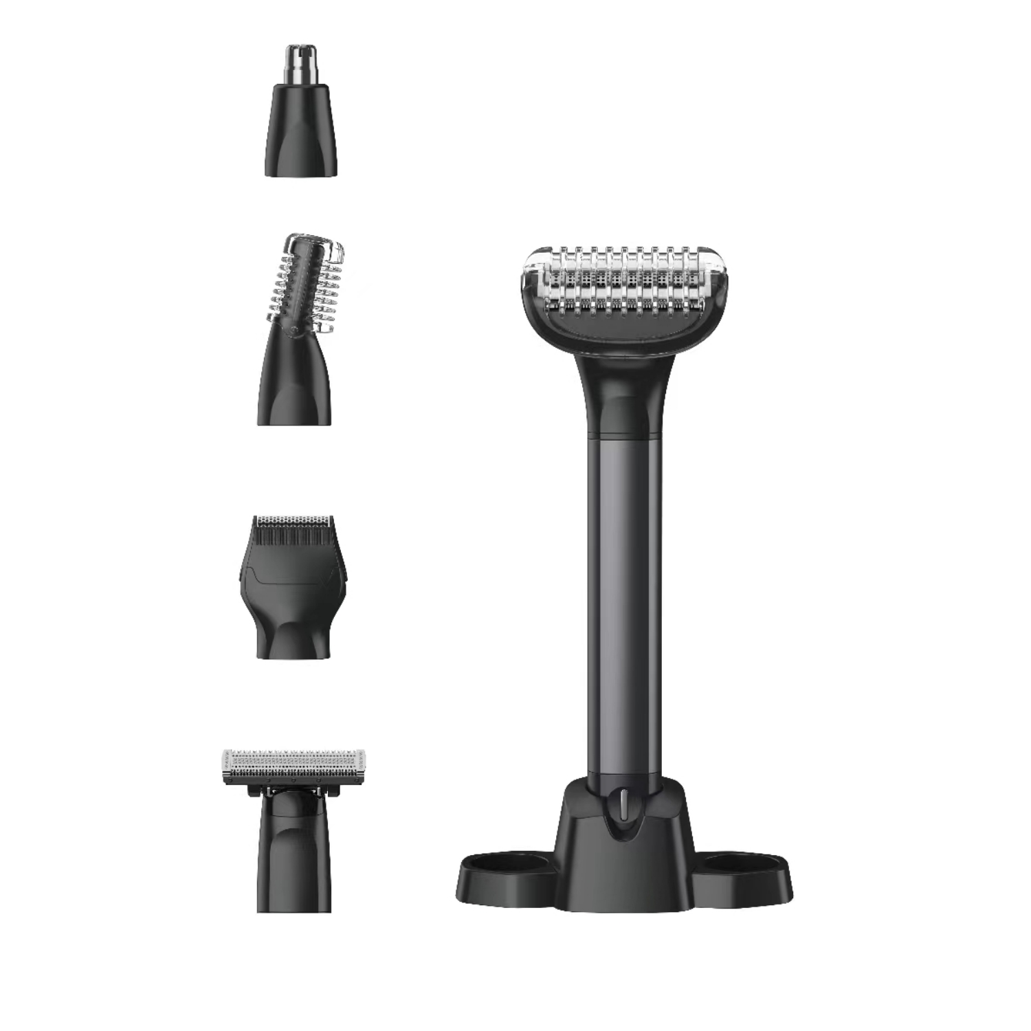 1*shaving head、1*one blade head、1*reciprocating shaver、1*eye-brow trimmer head、1*nose hair trimmer head、1*rotary shaving head
