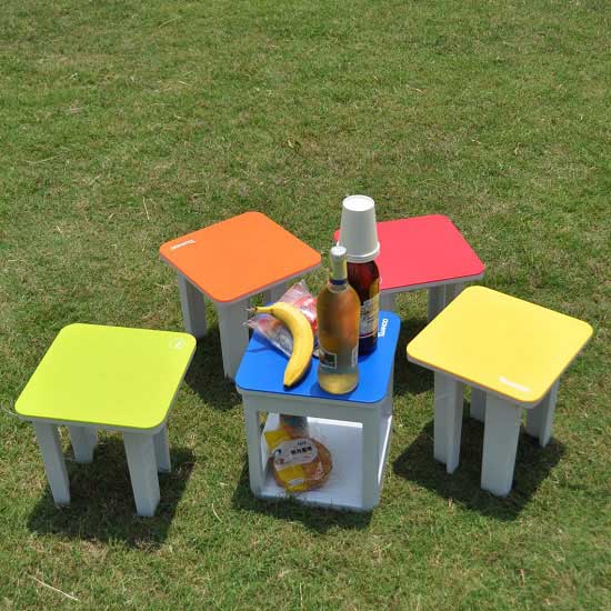 These stools come with a unique structure, which combines five stools into a single cube. These stools with a picnic bag are a practical outdoor companion. These stools feature a robust housing for high durability.