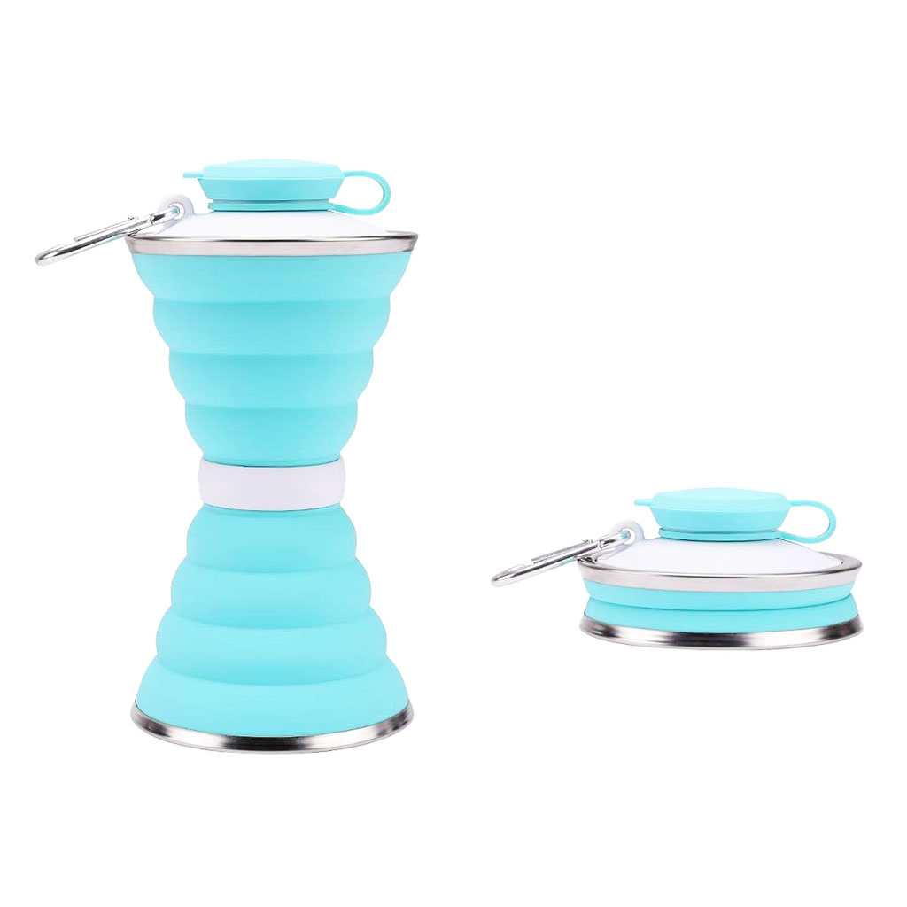 500 ml Hourglass-shaped Silicone Collapsible Water Bottle with Carabiner includes the following features :