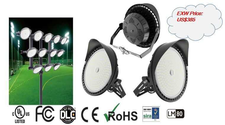 The stadium light is mostly used for industrial and commercial applications such as stadium lighting, road and area lighting, parking decks, auto dealerships, high masts, sports fields and other recreational areas.It is 500W,IP65 rated,CRI>80,120lm/W,Rotable L-bracket with clear angel indicator,180° adjustable