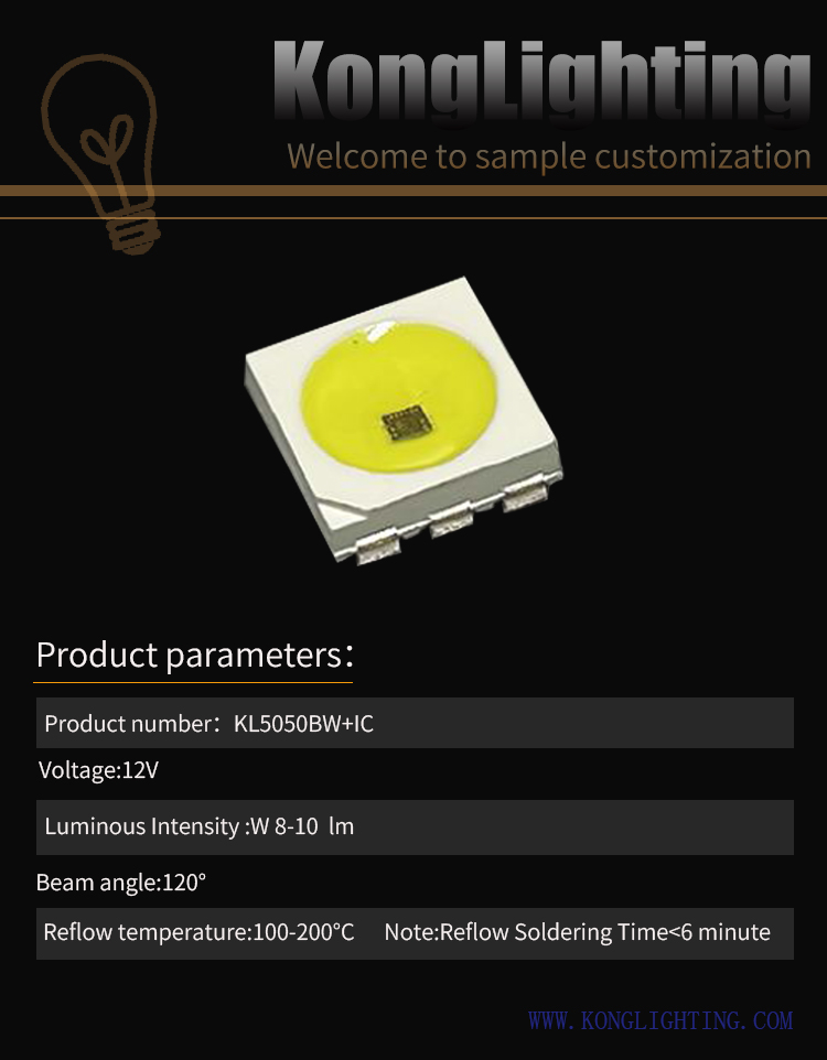 5050 white light built-in IC LED lamp beads 12V optional support single-point single-control breakpoint resume